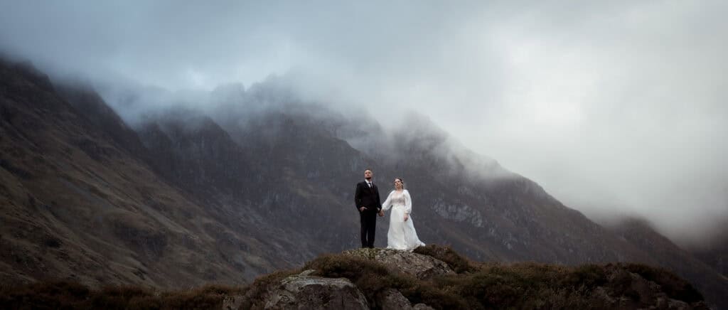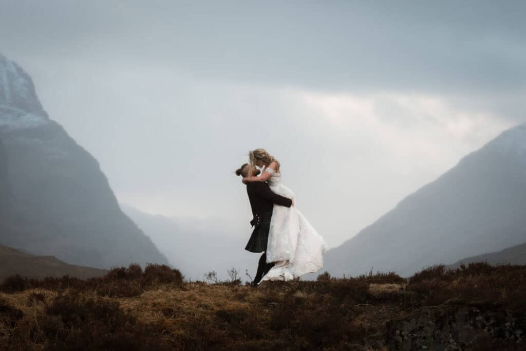 Do we need witnesses if we’re eloping alone? Yes. Scottish law requires two witnesses, no exceptions. But this is easy to sort – your photographer can be one, your celebrant can help arrange others, or you can ask friendly locals.